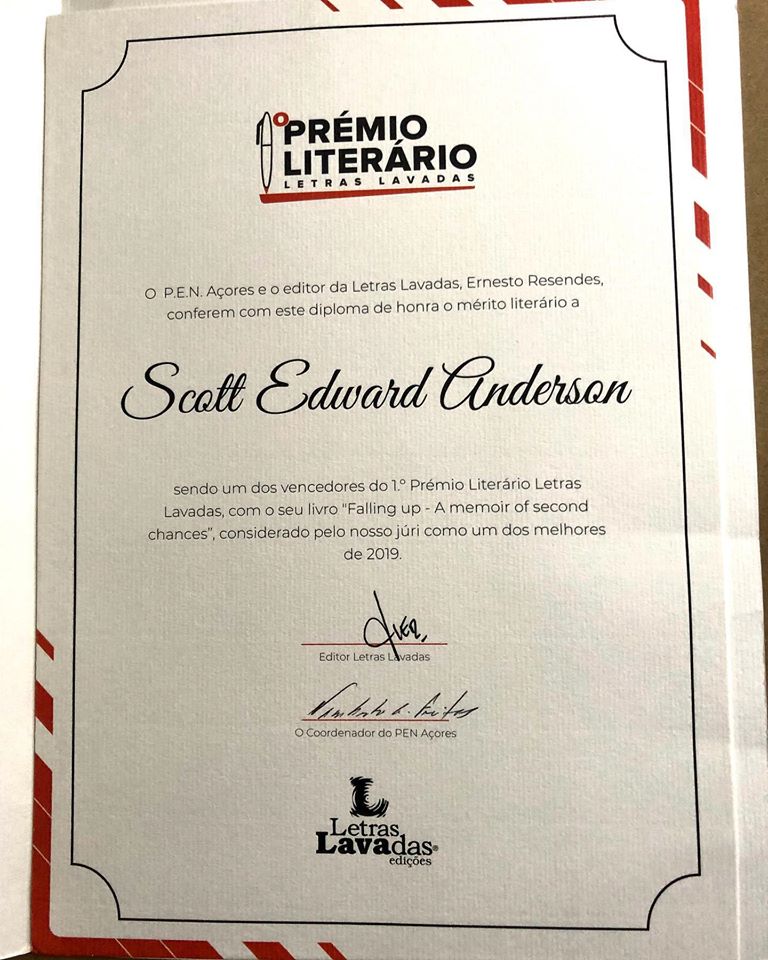 - Received an award for FALLING UP from Letras Lavadas, in conjunction with PEN Açores, and a Nautilus Award for DWELLING. FALLING UP also received notices from Book Authority for Best New Memoir and Best New Family Books.